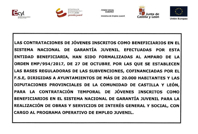 MUNICIPALES PLAN EMPLEO JUVENIL UNIVERSITARIO PROV. SALAMANCA APORT. GTO. MANTENIMIENTO VIVERO EMPRESAS